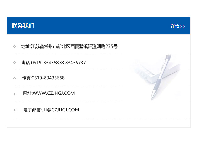 傳真:0519-83435688    郵編:213135    網址:WWW.czjhgj_com.gaoyuanxue.com    電子郵箱:JH@czjhgj_com.gaoyuanxue.com